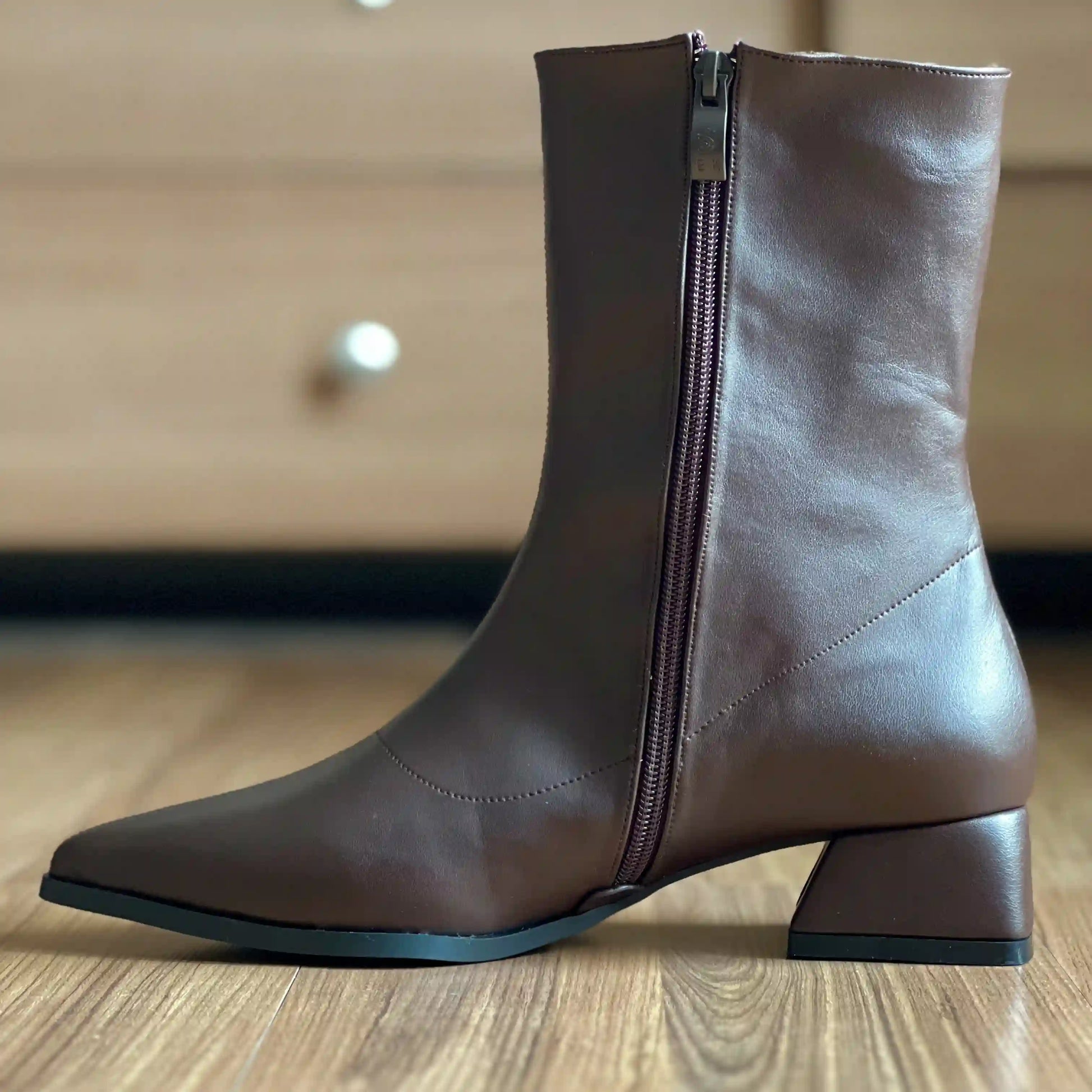 يتميز الحذاء بتصميم بسيط وراقي مع كعب ثابت بارتفاع 3 سم يوفر ثباتًا وراحة أثناء المشي، كما أن السوستة الجانبية تسهّل ارتداء الحذاء وخلعه بسهولة.